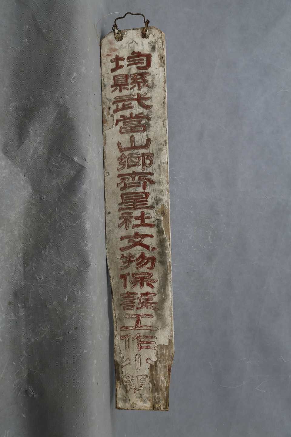 “均县武当山齐星社文物保护工作小组”木匾